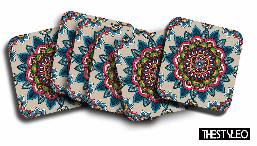 Mandala Wooden Designer Printed Square Tea Coasters (MDF Wooden, Set of 6 Pieces)