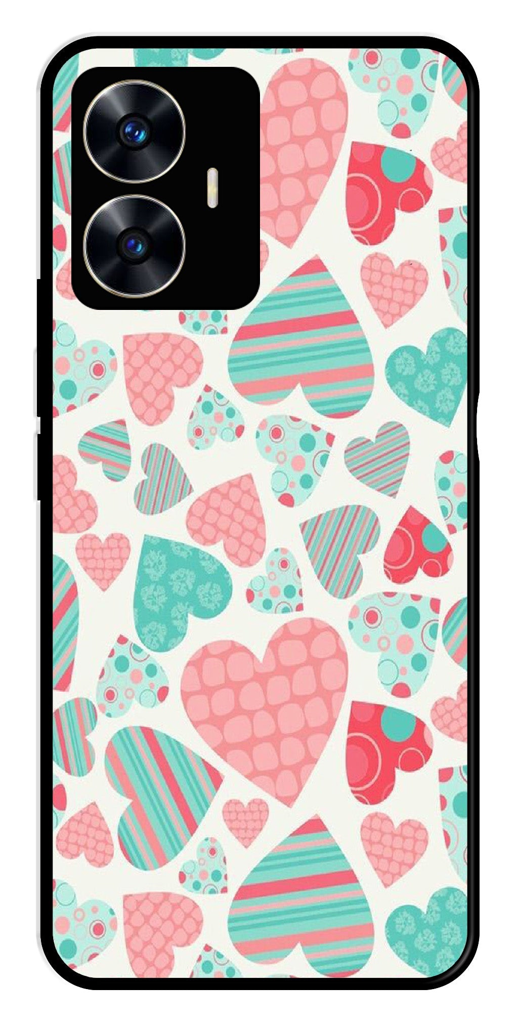 Hearts Pattern Metal Mobile Case for Realme C55